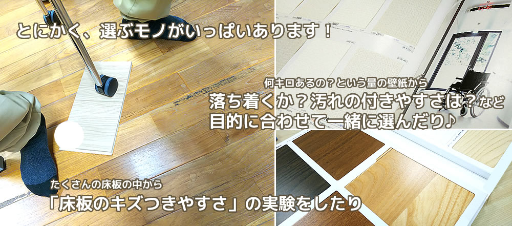 ※写真は値段が高ければいいのか!?というのをお客様に見ていただいている時の一コマです。 床や壁紙の選び方など家を使う側・買う側にたった目線で一つ、一つアドバイスいたしますのでご安心ください。